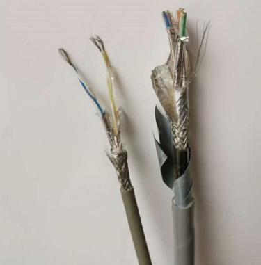2線對4芯(2x 2x24AWG)(2*2*0.2)(2*2*0.5)(2*2*0.75)(2*2*1.0)(2*2*1.5)多股絞合鍍錫銅絲,PE絕緣護套;為適用于復雜的工業(yè)噪聲環(huán)境,特采用鋁箔/聚酯復合帶100%屏蔽率+鍍錫銅編制網90%屏蔽率共雙重屏蔽,并附有獨立TC接地導體,工業(yè)灰色PVC外護套,特性阻抗120歐姆 。